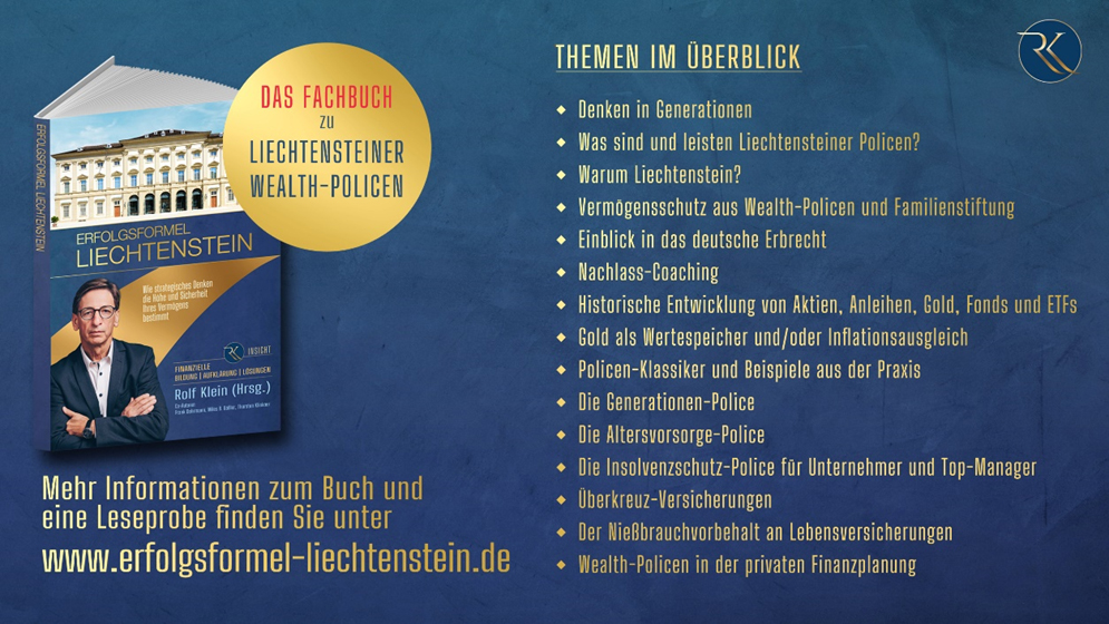 Der Finanzplatz Liechtenstein und die Private Wealth Police der Vienna-Life Lebensversicherung AG (www.vienna-life.li) gehören, bei richtiger Vertragsgestaltung, heute zu den wirkungsvollsten Bausteinen einer Vermögensschutz-Strategie für Generationen, die auch zukünftigen politischen Entwicklungen standhält.