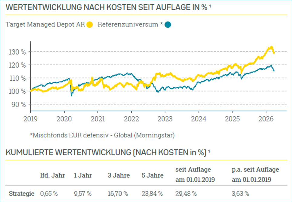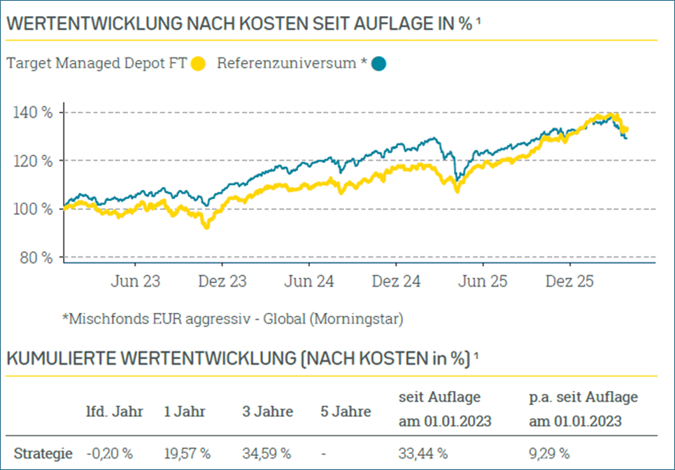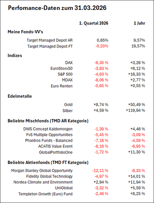 Auch Target Managed Depot AR und FT mussten im ersten Quartal 2026 Kursrückgänge verzeichnen, die sich jedoch in Grenzen hielten.